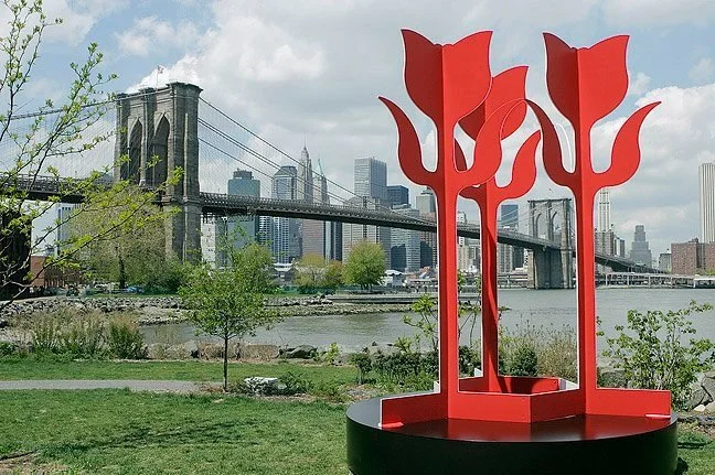 Tulips, 2005. Temporary installation. Painted aluminum, 12 ft (3 m 66cm). Brooklyn Bridge Park, Brooklyn, NY.