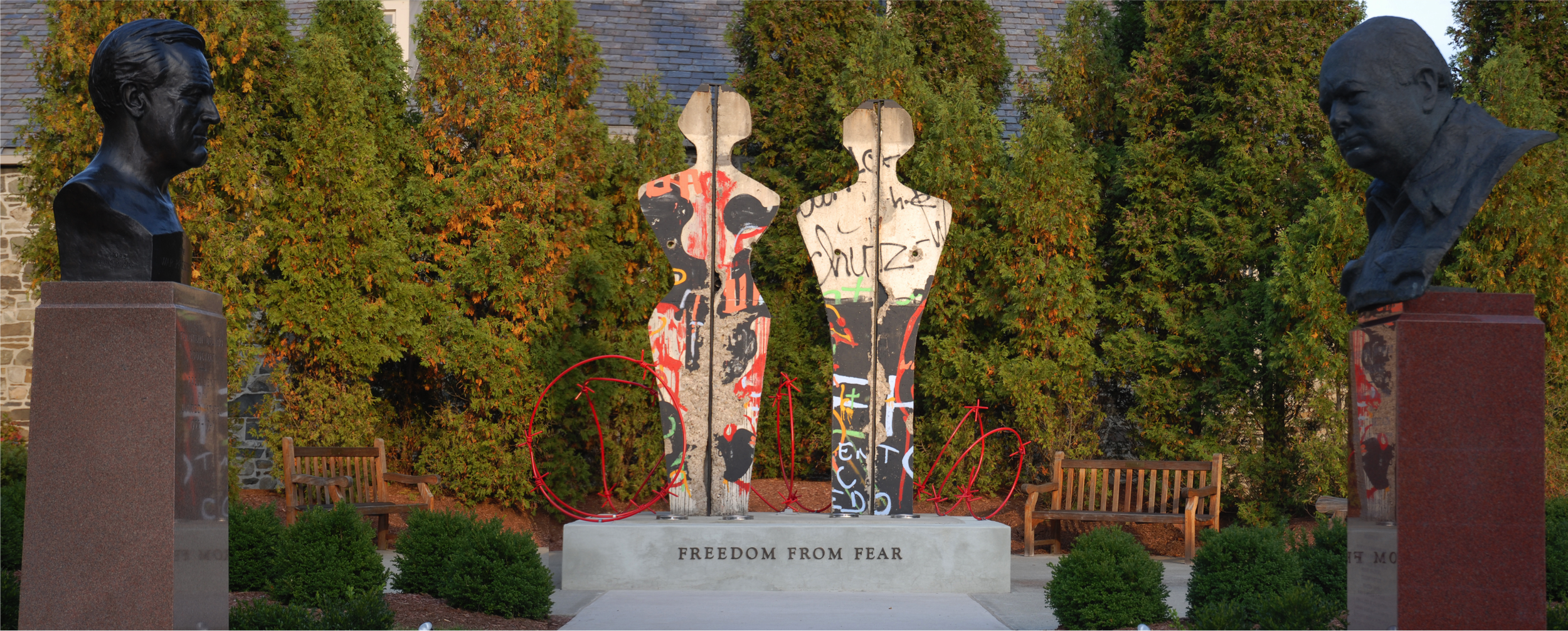 Today, BreakFree stands at the center of the Roosevelt Library’s Freedom Court, an addition to the Library’s grounds constructed in 2007. Busts of Franklin D. Roosevelt and Winston Churchill are positioned facing each other, in honor of the two leaders’ friendship and allegiance.
